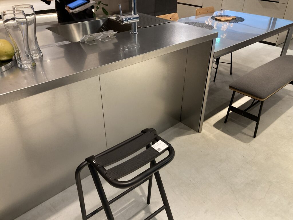妻はもともと「ステンレスはたわむのが嫌」という理由で天板の選択肢から外していましたが、人造大理石はすぐ汚れやすいという話を聞いたこともあり、「ステンレスもありかも」と前向きな意見に変わりました。