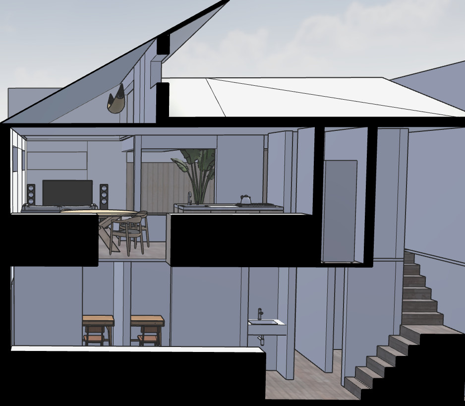 設計のポイント: 狭小地であっても、垂直方向の繋がり(吹き抜け)と水平方向の抜け(屋上デッキ)を組み合わせることで、面積以上の豊かさを創出しました。ライフステージの変化に柔軟に対応できる、サステナブルな都市型住宅の提案です。